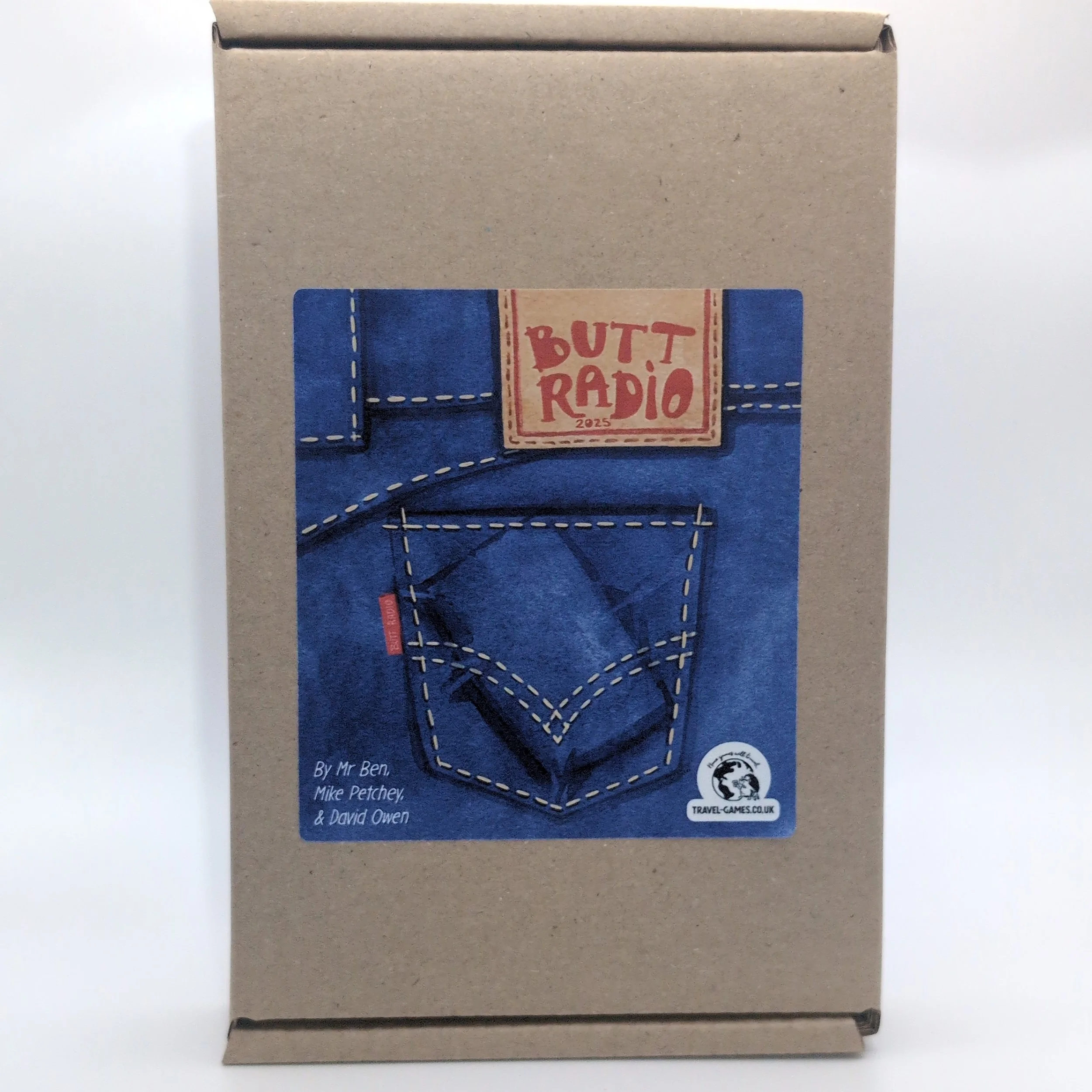 Butt Radio was born at a board game convention after a real-life rogue transmission caused announcements through the halls. It was designed and tested amidst fits of laughter and cries of "WHO SAT ON THE RADIO?" at the convention and refined afterwards, this game turns an unforgettable moment into an unforgettable play experience.