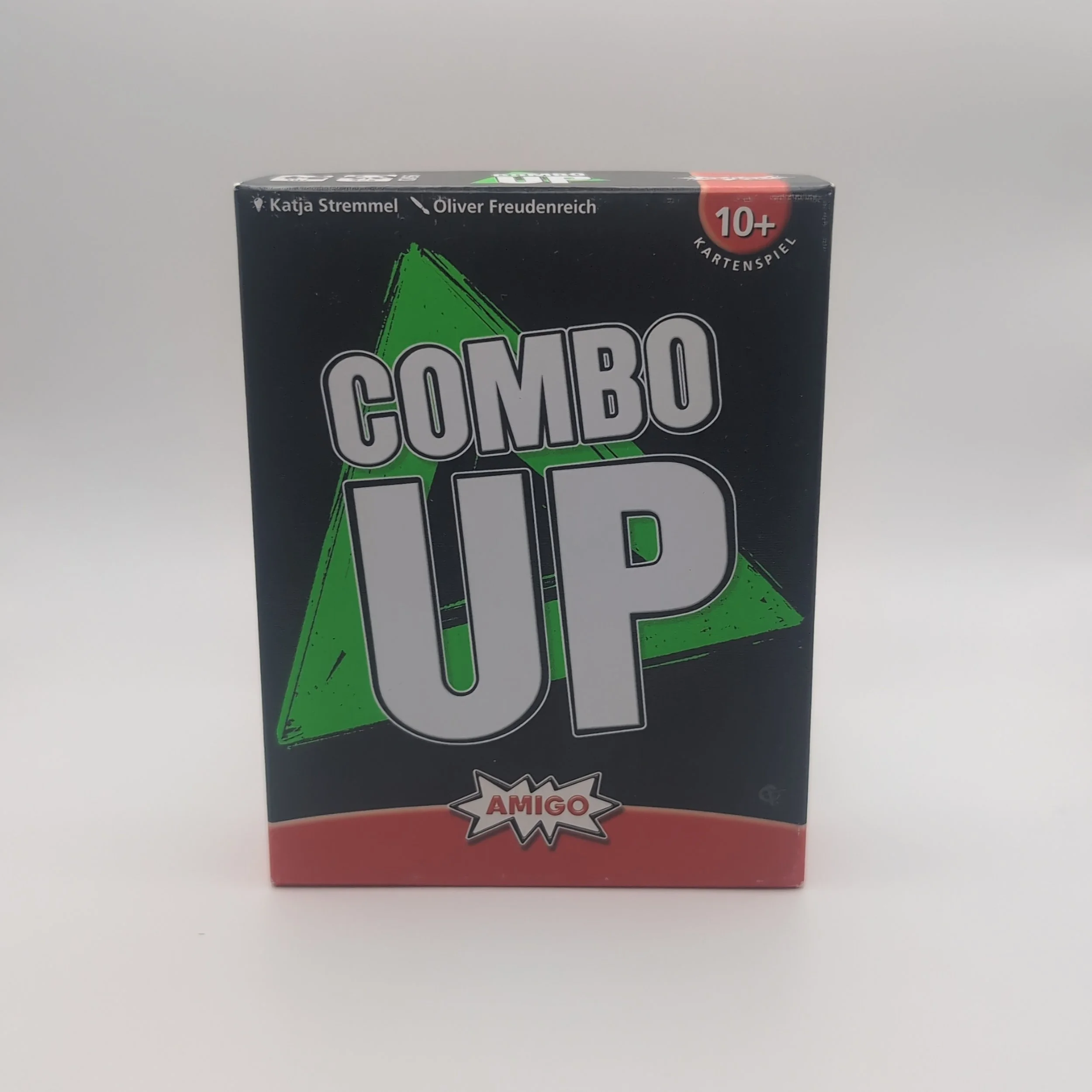 Compared to Krass Kariert, the differences are: Different hand sizes for a 5 player game. Krass Kariert has four lives (ends when a player can't hand in a chip). Combo Up has three lives (ends when a player hands in their last chip). Combo Up has additional new rules for the new Pick Up card (all other players take a card). Combo Up has additional new rules for the new Pass Along card (all other players take a card).