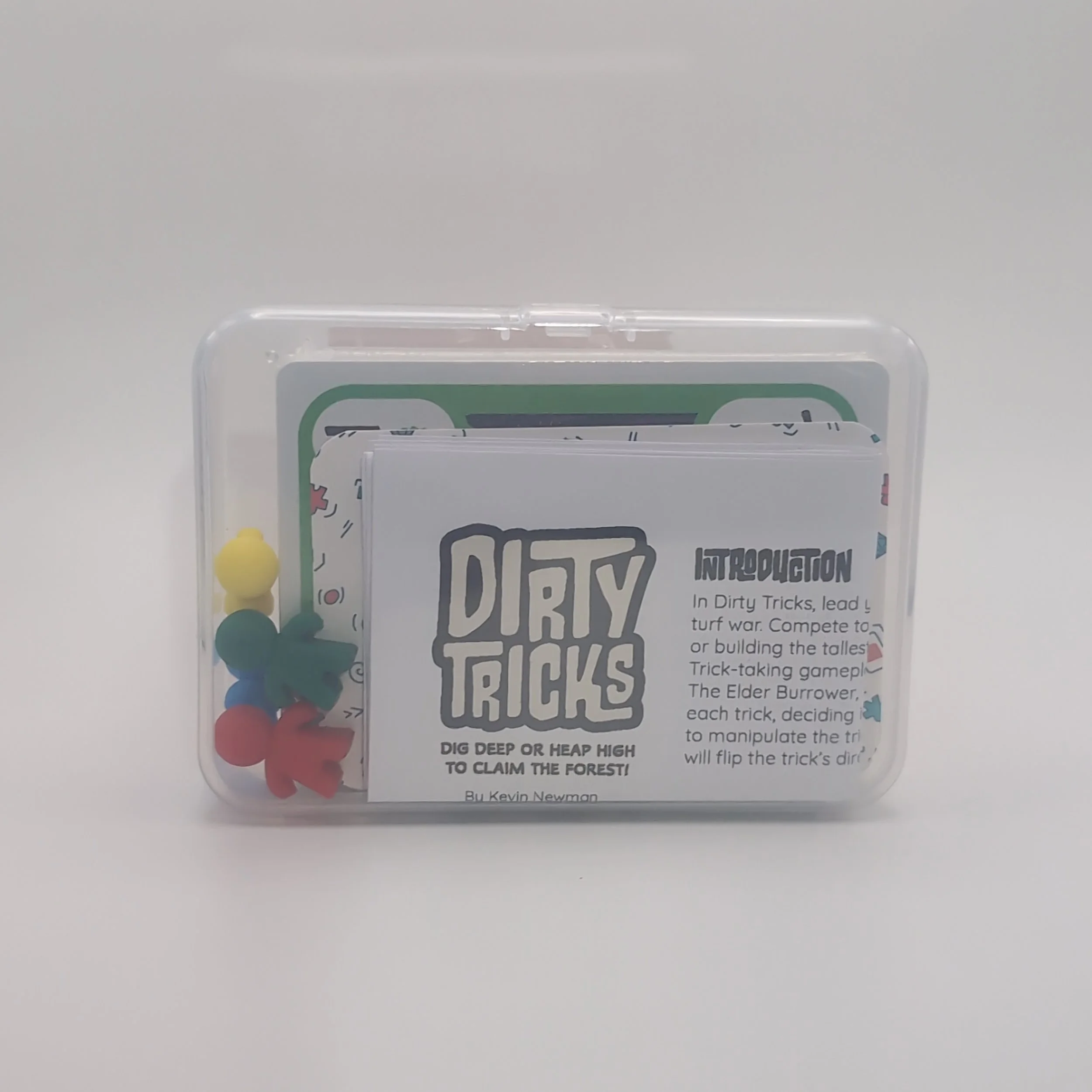 In Dirty Tricks, lead your Badger clan to victory in this mischievous turf war. Compete to dominate the forest by digging the deepest Sett or building the tallest Spoil heap as you navigate dynamic trick-taking gameplay. The Elder Burrower, the forest’s wisest badger, sets the stakes for each trick, deciding if the highest or lowest card wins. Use your wits to manipulate the trick’s value, but beware of the Soil Switch, which can flip the trick’s value.