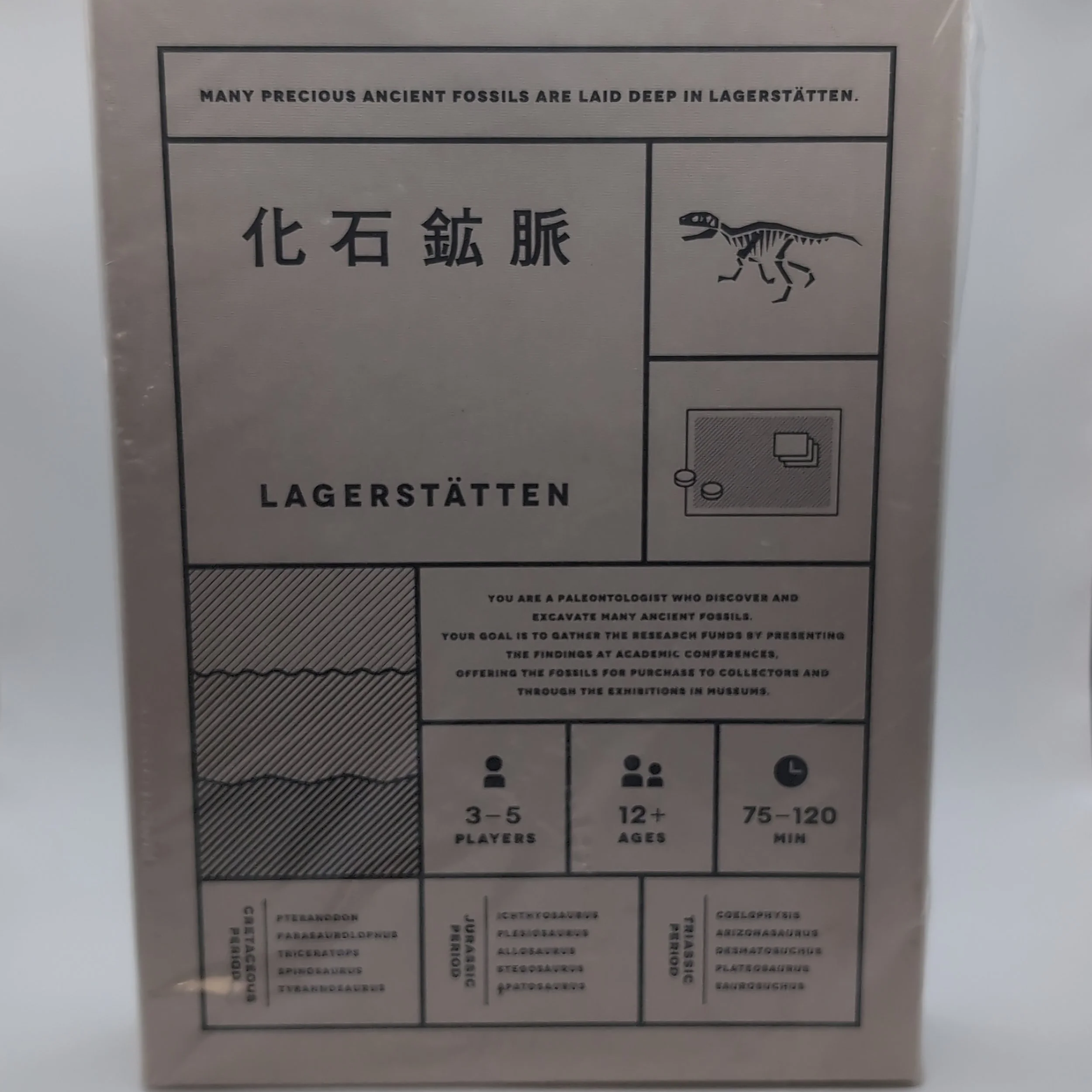 Lagerstätten, a.k.a. 化石鉱脈, is a worker placement game, themed on excavating fossils, collecting sets of fossil types, and managing your resources (money, fame). During the game, you send workers to action spaces so that they can: