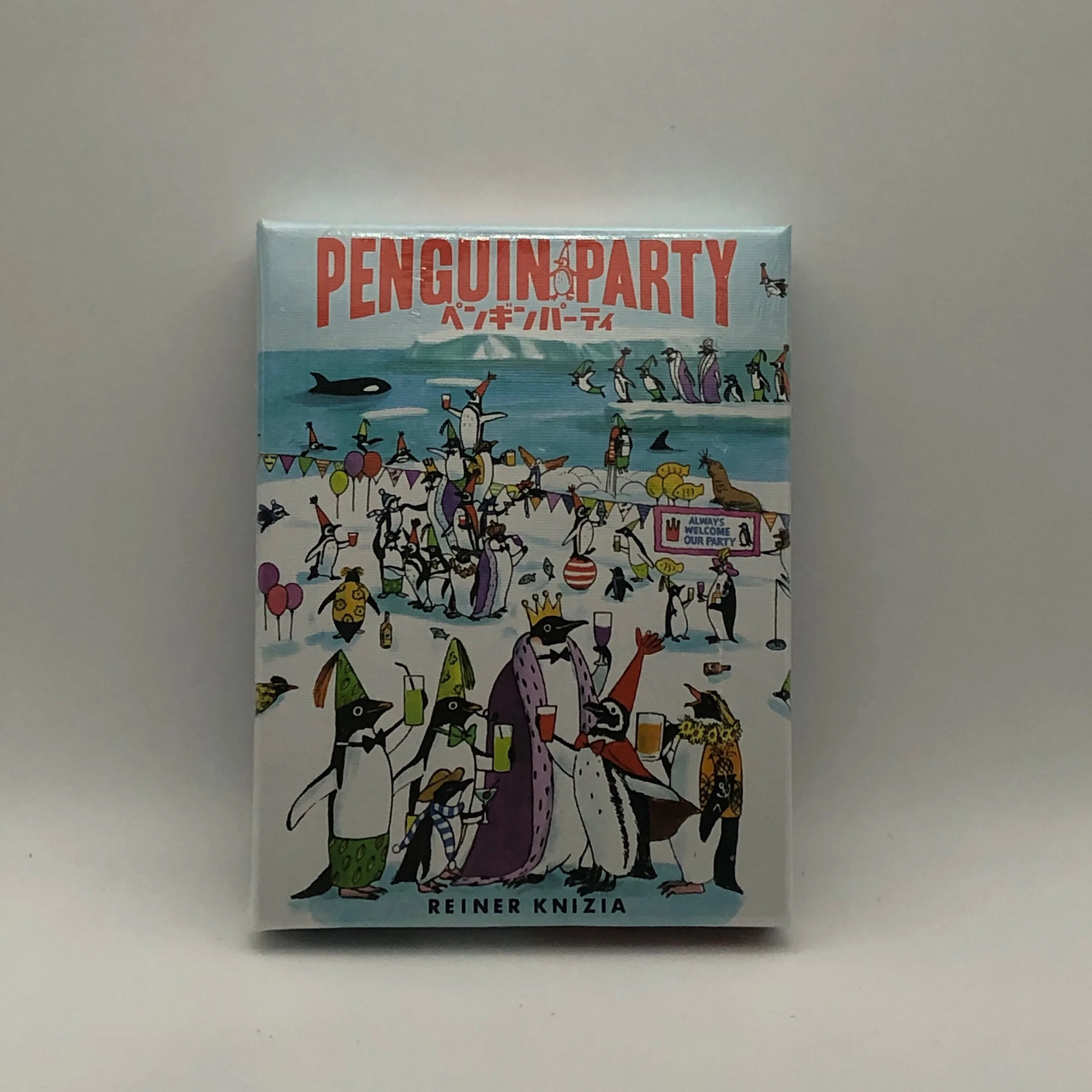 In Penguin Party, players collectively build a pyramid of penguins, trying to empty their hands of cards along the way. The deck consists of 36 penguin cards: 8 green and 7 each of red, blue, yellow, and purple. Deal the deck out as evenly as possible, with the final card in a five-player game starting as the first card in the base of the pyramid.