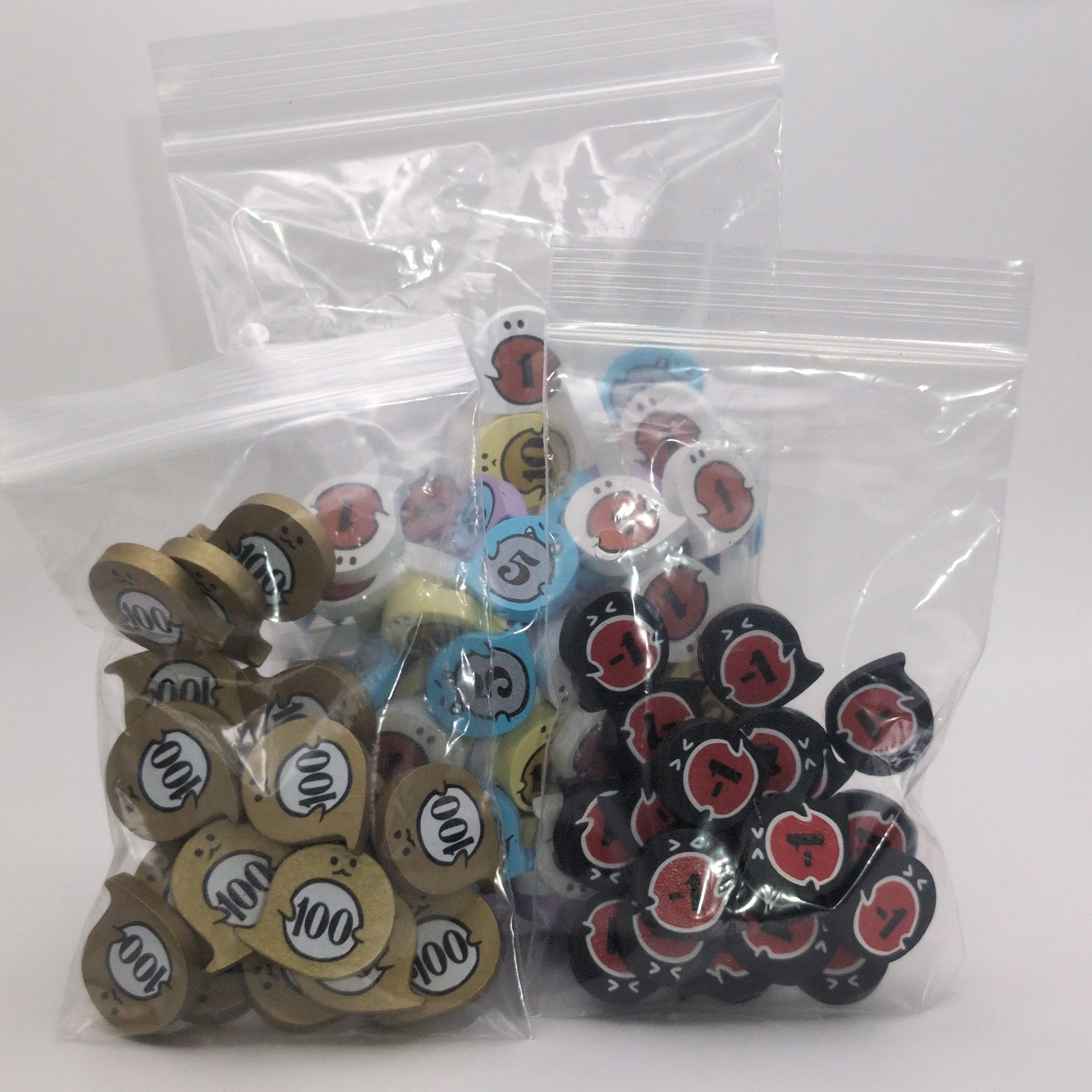 Cool Ghost Tokens that can be used as points for all sorts of games. Designed and produced by the wonderful Sai Beppu.