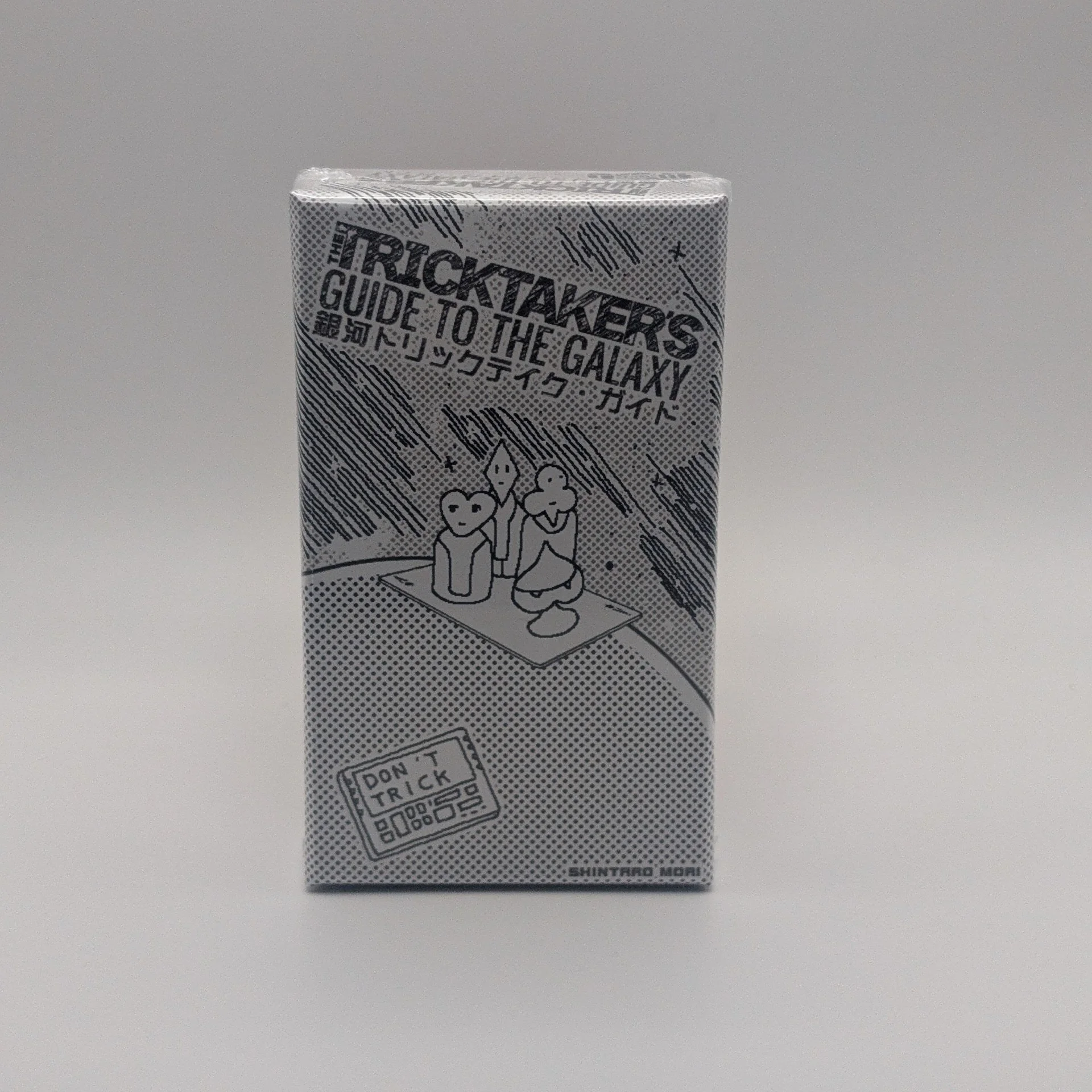 The Tricktaker's Guide To The Galaxy is a trick-taking game for 3–5 players that combines traditional play with an innovative pre-game auction. Before the main game begins, players enter an Editing Phase, where they use coins (which also serve as points) to bid for or avoid strange and risky rule cards that modify gameplay.