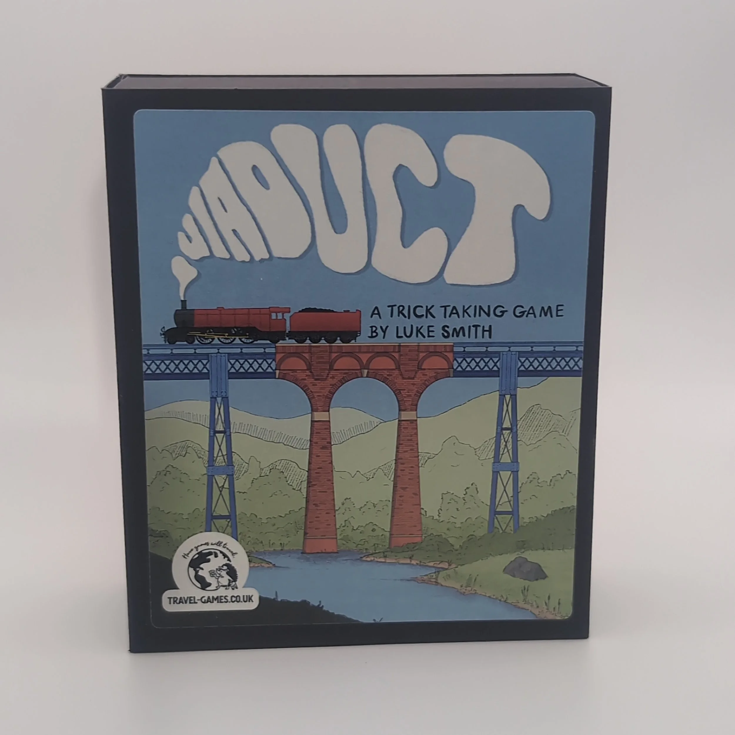 Viaduct is a strategic trick-taking card game for 2–5 players where players contribute material cards to one of several communal viaduct projects with the aim of being the best builder in town!