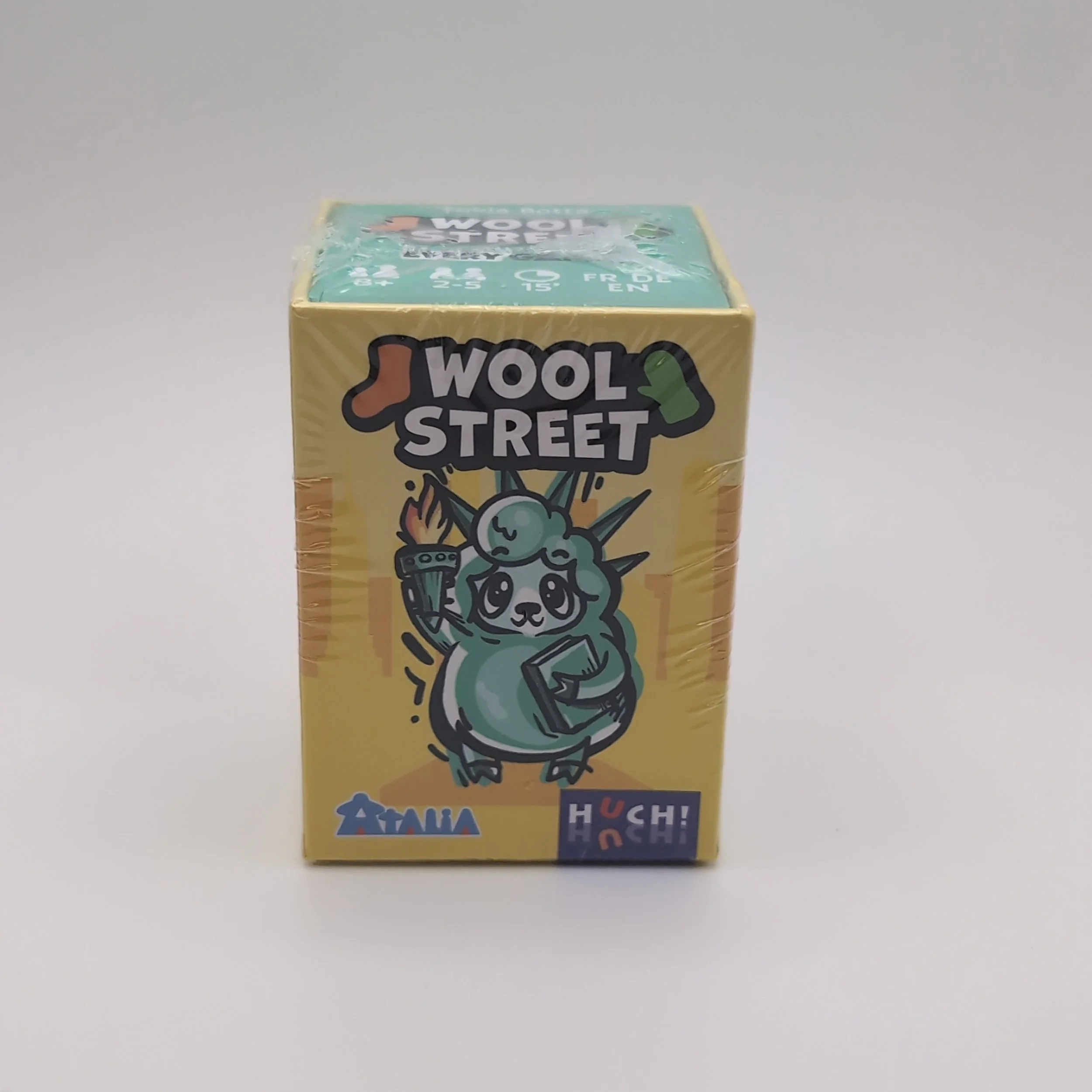 Setup: Distribute 10 wool cards to each player, two of each colour, and place them on the table in front of you. This is your wardrobe. Shuffle the New York cards, players secretly have a look at some of them, then form a drawing deck and place it in the middle of the table.
