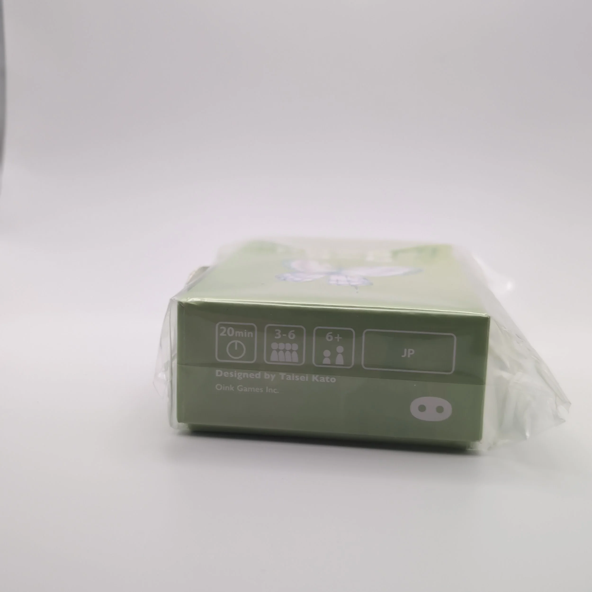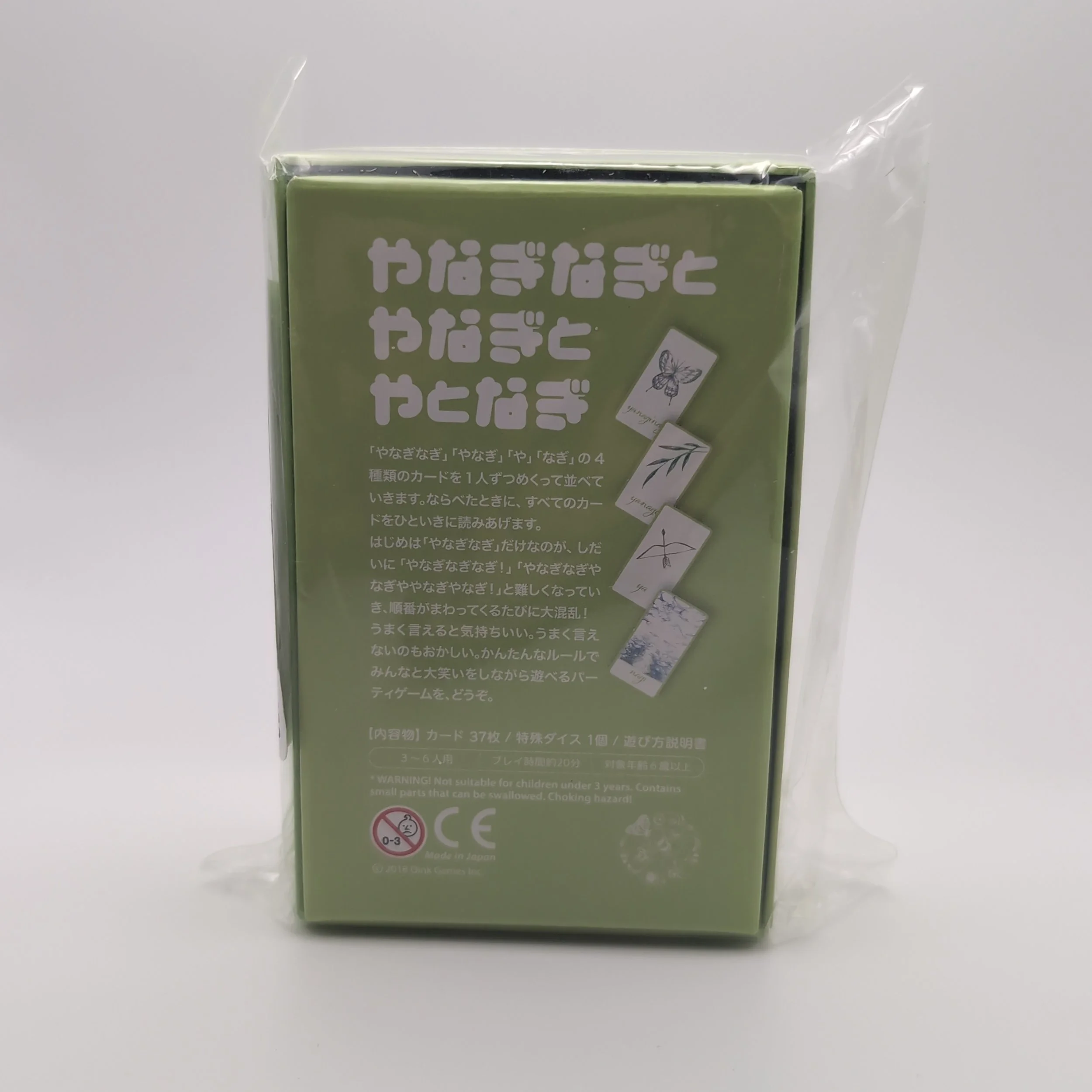 TomaTomato includes four card types — Tomato, Mato, Ma, To — that you will turn over and line up one by one, and after a turn, you must read the entire line of cards from start to finish. At the start you may have to say only "Tomato", but quickly the cards will escalate into the difficult tongue-twister "Tomatotomatomama!" It sounds great when you can say it smoothly and hilarious when you can't! With its simple rules, TomaTomato is a party game full of laughter that anyone can enjoy. Mini Minion and yanaginagi are separate titles with the same gameplay, the latter using artwork by Japanese musician yanaginagi, from whom that edition of the game gets its name.