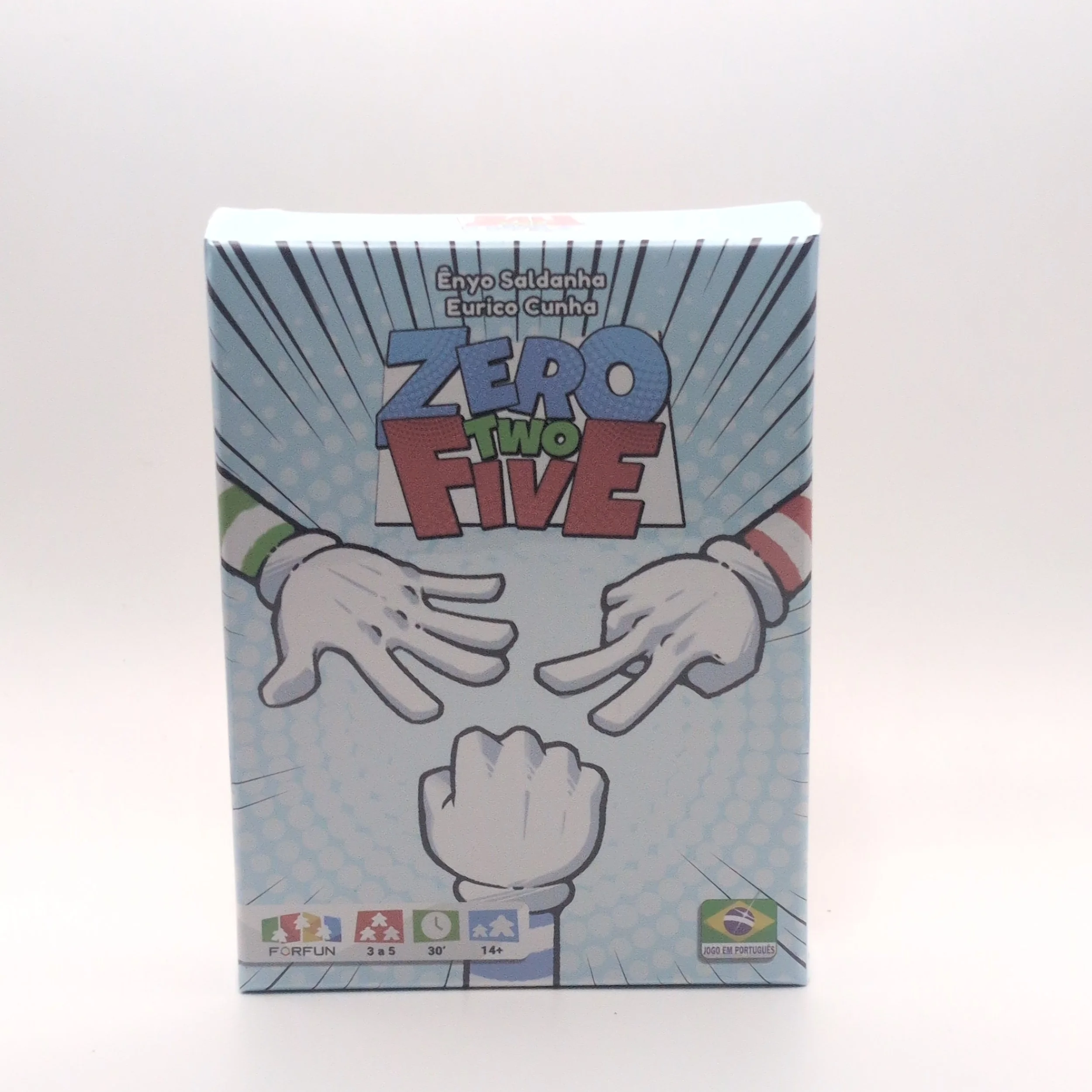 Zero Two Five is a card game in which your objective is to win 0, 2 or 5 tricks(the numbers represented by Rock, Scissors and Paper respectively). The first player to get three score tokens or the player who gets the most points is the winner.
